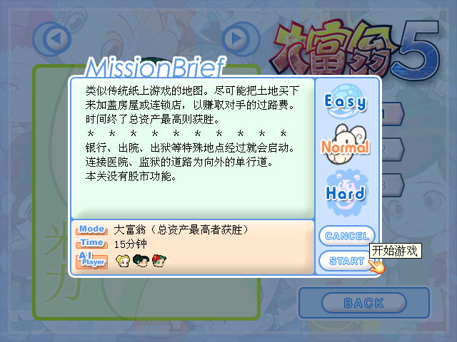 3.多种胜利条件:相较于传统大富翁游戏必须玩到剩下最后一人没有破产的胜利方式,在《大富翁 5》中又新增多种胜利条件,让玩家们享受各种不同的游戏乐趣。