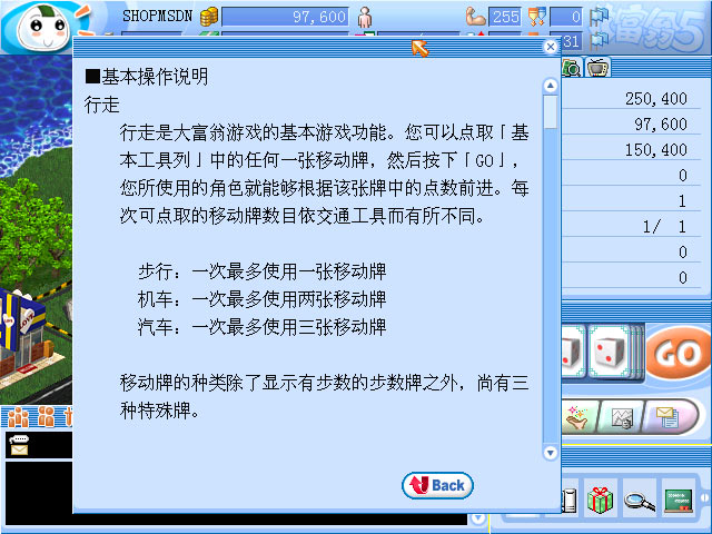 2.移动牌系统:传统大富翁游戏是由丢掷骰子来决定行走的步数,而在《大富翁 5》中是由玩家手中所持有的三张移动牌来决定行走的步数,这代表玩家在移动的过程中拥有较多的自主权决定停留的位置。