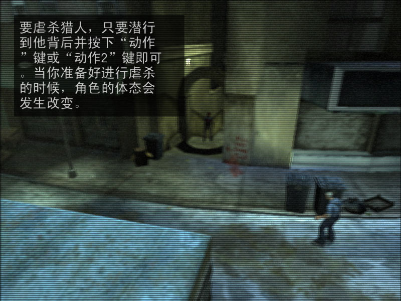 游戏的唯一宗旨就是杀人,但是与《刺客任务》等潜行类游戏不同的是,《刺客任务》的宗旨是暗杀,而这款游戏是虐杀。在游戏里,玩家可以拿铁勾、锯子、破酒瓶虐杀敌人,而要从背后偷袭才能看虐杀片段,在背后偷袭之前先慢慢靠近敌人集气,集气越多,画面越激烈。