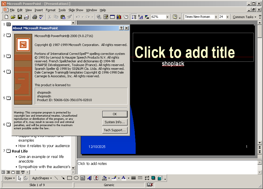 名称Microsoft PowerPoint 2000 (9.0.2716)