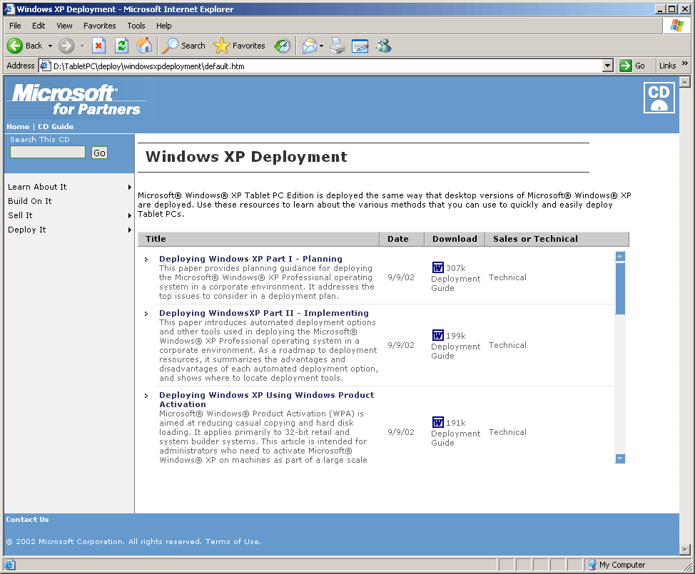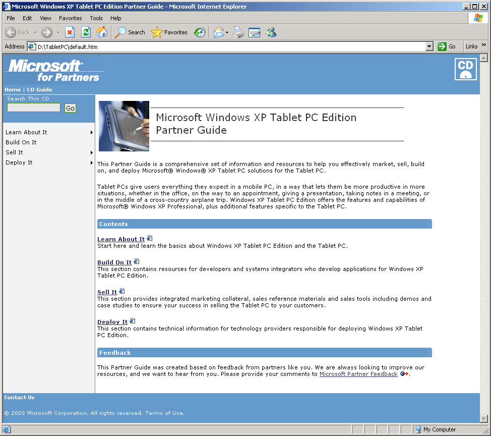 本合作伙伴指南提供了一套全面的信息和资源,旨在帮助您有效地推广、销售、构建和部署适用于平板电脑的 Microsoft Windows XP 平板电脑解决方案。平板电脑能够满足用户对移动 PC 的所有期望,并让用户在更多场景下提高工作效率,无论是在办公室、赴约途中、进行演示、会议记录,还是在跨国飞行途中。Windows XP 平板电脑版不仅具备 Microsoft Windows XP 专业版的所有功能,还提供了专为平板电脑设计的附加功能。
