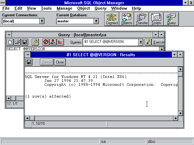 在 SQL NT 中,微软将 SQL Server 4.2 的核心程序代码,用 Win32 API 重写,并于 1993 年 Windows NT 3.1 发行后一个月,完成 SQL Server for Windows NT 4.2 的开发工作,在市场上销售。