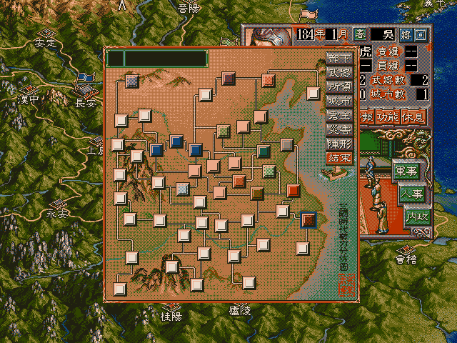 可能是因为 4 代知道的人太多了,此次光荣并没有以 4 代为切入点,而是以 3 代为基础作出了大胆的创新。本作从内政系统上来说绝对属于“重武轻文”型。首先是破天荒的把武将所能担当的工作分为“计谋、内政、人事、外交、军事、特殊”6 大范围,君主居中高高在上,参谋站在君主身边出谋划策,六大内务担当官分列两旁,等待诏命,这样便使得武将分工更加细化了。
