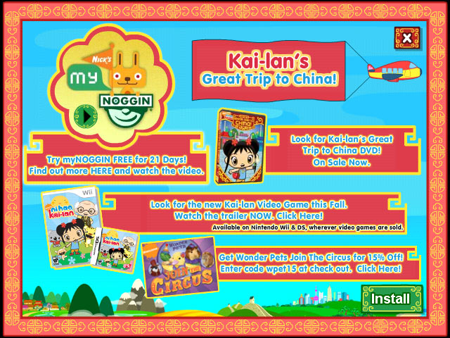 全程英文发音,可锻炼初级的听力《凯兰的中国之旅》是一款由 Sarbakan 开发、Nickelodeon 发行的单人幼儿寓教游戏。该游戏改编自尼克频道同名卡通剧,玩家将同凯兰和爷爷及伙伴们一同去中国探望姑奶奶,参加熊猫宝贝的命名会。通过寻找隐藏的熊猫宝宝、模拟做饺子面条等食物、装饰纸龙、拍摄烟花照片等小游戏,提高小朋友对颜色、形状、组合、数字的辩识能力和记忆力,以及掌握简单的英语知识。