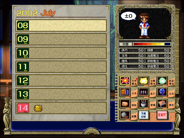 游戏开始时需要输入自己的姓名和出生日期,后做一点心理测验以决定主角的性格。游戏分两段:9 至 10 岁及 14 岁至 17 岁。两段时期的学习课程相同, 玩家每星期要编排自己每日要上的课程,课程种类有武术、课外活动、理系、文系、艺术、创造魔法、治疗魔法、武术魔法八种,当然主角可以休息和搜索。玩家除了要编排每日要上的课程之外,还要与佳人约会,为心仪的对象解决日常问题,与又是同窗又是情敌的朋友比赛,间中还要应付考试,就算是假日也得找心仪的对象谈天、送花。