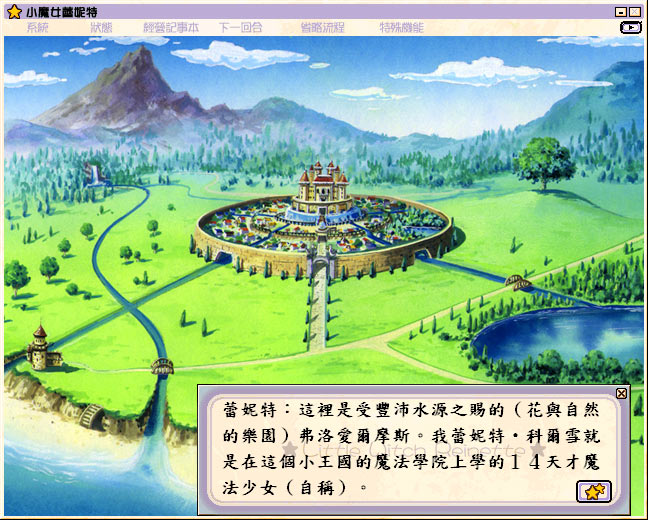 《小魔女蕾妮特》是由日本工画堂工作室于 1999 年开发的 PC 平台模拟经营类游戏,作为《小魔女帕妃》的姊妹作,以魔法小镇弗洛爱尔摩斯为背景。玩家将扮演 14 岁少女蕾妮特,通过经营“微笑魔法屋”在半年内赚取 50 万金币,以修复父亲遗留的珍贵陶器“天鹅之泪”。