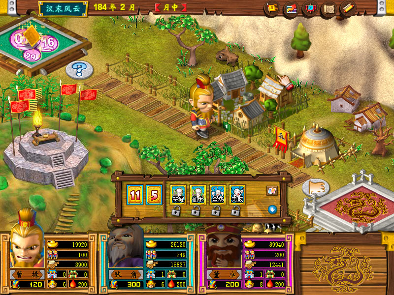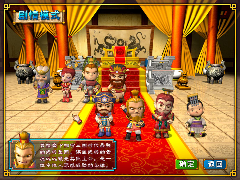 玩家可选择刘备、曹操、孙权等八位主公,以统一中国为目标,通过经营城池、招募武将、积累银两粮草等资源展开势力争夺。核心玩法包含剧情模式、自由模式及联机对战,其中剧情模式需突破关卡,自由模式支持自定义地图与任务条件。作战系统采用相生相克的阵形布局,结合报数金卡实现行动点数调配与计谋触发。游戏内置武将收集系统,通过攻城战、单挑或察举机制获取武将卡,并设有卡片店、药铺等12种功能建筑。胜利条件包含财产、总分、占领、人才四种判定方式。