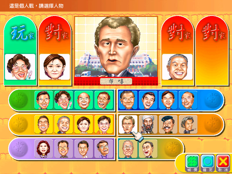 本游戏以当时最热门的 22 位政治人物为主角。游戏目标为在一雀麻将内,提升自己筹码以打入排行榜,和一代游戏相同,有点过于单调。虽然有分单人赛与团体赛,但目标并没有变化。一代语音停顿的缺点依然没有改善,而且还取消一代的秘招,娱乐性下降不少。