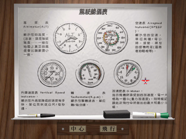 这套更精密的物理引擎能够实现当时其他飞行模拟器无法企及的逼真特技飞行。游戏包含内容丰富的教学模式,涵盖从平飞和方向舵转弯到雪崩式转弯和滚转等最复杂的特技动作。一位教练会在教学过程中与玩家一同飞行,提供有益的建议并指出玩家的错误之处。如果玩家得分足够高,即可获得每个特技动作的证书。