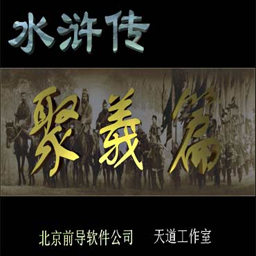 这是一款由北京前导软件有限公司天道工作室从古典名著《水浒传》改编成的角色扮演类游戏。为了更好地表现原作的风采,将现有游戏模式加以综合,最终选用了 SLG+RPG 做为游戏的整体表现形式。这种游戏形式既能够表现游戏曲折复杂的人物和故事,又可以在战斗方式上表现出单个或集团作战的特点和场面。这部作品将分为三篇,第一篇名为“聚义篇”,后两篇叫作“征战篇”和“终结篇”),前两篇基本上按照《水浒》小说的线索,以三打祝家庄分界。“终结篇”则主要取材于民间传说,让玩家最终实现斩尽贪官的辉煌完美结局。游戏中主要人物在前集的个人参数可以带到后集。也就是说,在“聚义篇”中辛辛苦苦练出的等级,可以在“征战篇”和“终结篇”中延续使用。各篇采用多线索的 RPG 模式为主要游戏框架来展开故事情节,集团战斗采用回合制战棋型 SLG(仅“聚义篇”就有70场大型战役),战斗动作则采用电脑动画和中央电视台拍摄的大型电视连续剧《水浒传》的实拍画面来做双重表现。另外人物对话采用全程语音。
