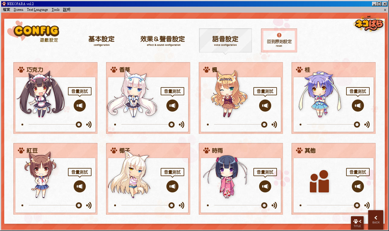 《猫娘乐园》(日语:ネコぱら,英语:Nekopara)是由同人社团 NEKO WORKs 开发的色情原创同人恋爱冒险型美少女游戏。角色配音是日语;游戏同时支持日文、繁体中文、英文三种语言的游戏字幕。时雨与其它四只猫娘,枫,桂,红豆,椰子开始在 La Soleil 工作。这个章节通过侧面描写红豆和椰子在 La Soleil 工作时的日常来展现她们情感关系的变化。