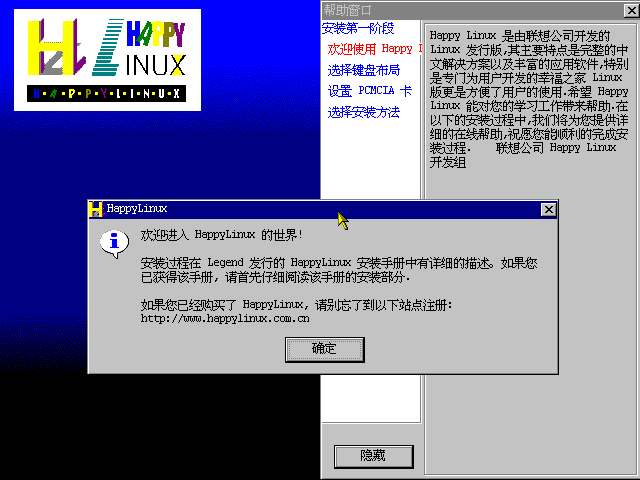 幸福 Happy Linux 是联想于 2000 年 5 月推出的自主研发的基于 Linux 内核的操作系统。