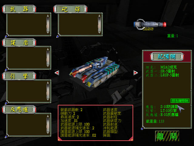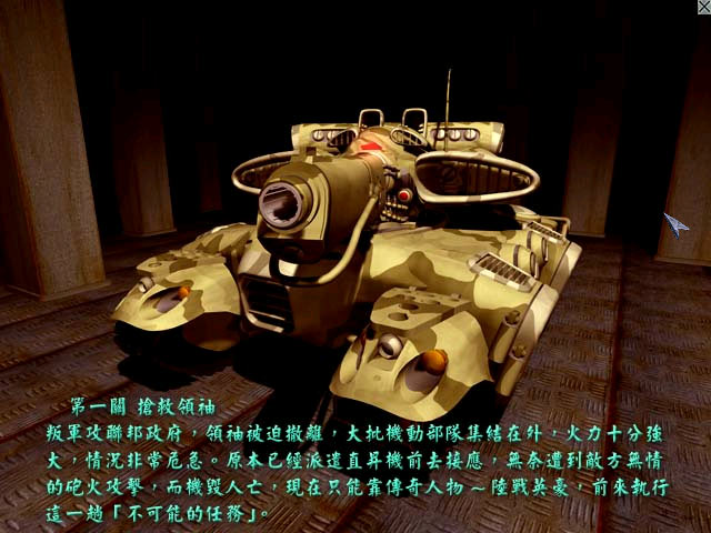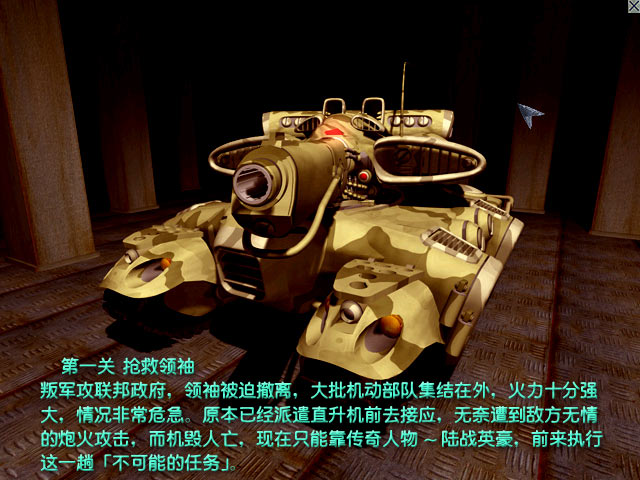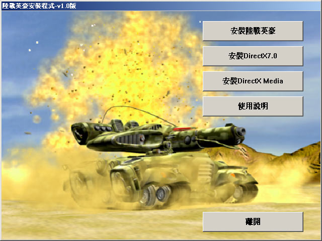 《陆战英豪:重回战场》是台湾荣钦科技股份有限公司于 2002 年推出的国产战略射击游戏。游戏有战役模式和对战模式。在战役模式中,多达 16 个关卡可供玩家选择,每个任务都有详细的文字,地图等说明,在开始任务前,玩家可以自由改装升级你的坦克,甚至干脆换一辆更高级的,当然得您有钱才行。在对战模式中,玩家可以和网上其他玩家进行自由的PK,不同的地图,不同的各类装备,各类坦克,多种多样的玩法,耐玩性很高。