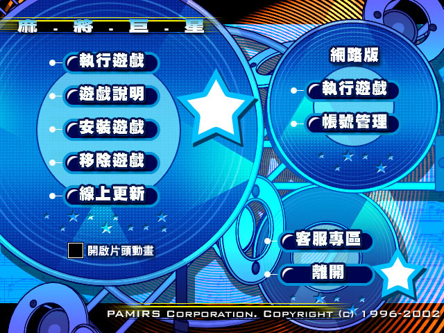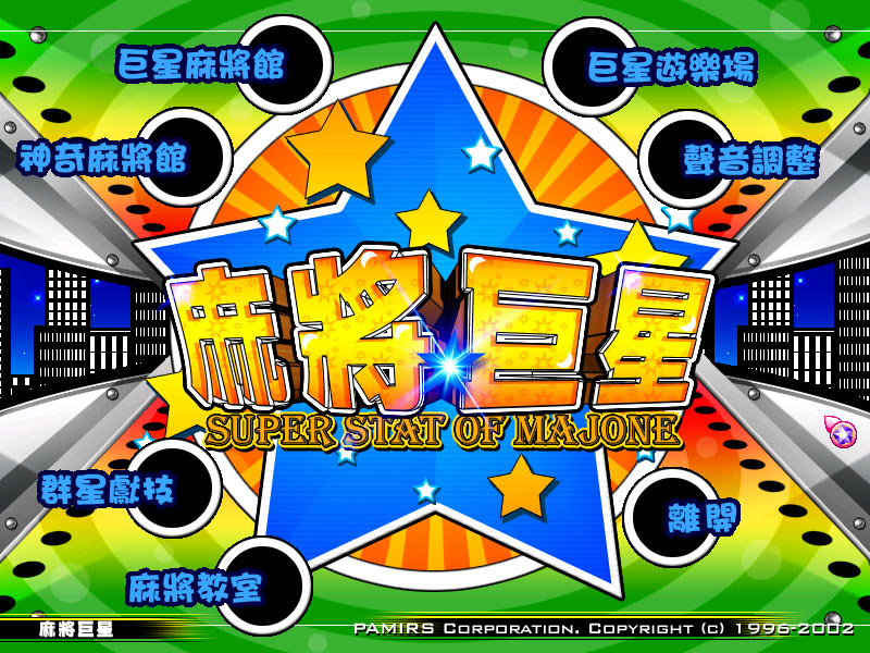 帕米尔信息 2002 年出品的麻将游戏,提供台湾 16 张麻将、香港 13 张麻将、日本 13 张麻将等三种打法规则。人物采用以张菲为首的 13 位艺人,无论画风与配音都唯妙唯肖,看得出制作团队的用心。而且计算机AI相当有水平,完全不会有乱吃乱碰的现象,因此玩家要获胜并非易事,幸好游戏随时可存盘,玩家可藉由存取档反复进行来胡牌或避免放炮。游戏里提供了可用千术的神奇麻将馆,与不可使用千术的巨星麻将馆让玩家进行麻将赛挑战;不想打牌时也可观看计算机自己打牌;初学者还有交互式的麻将教学,来提升牌技;同时游戏也提供了一些小游戏供玩家消遣,功能算是相当地齐全。而且打牌的画面完全仿造真实世界,让人倍觉亲切,因此算是一款制作得相当不错的麻将游戏。