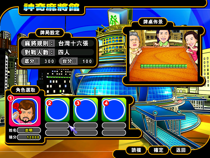 本单元是正式麻将大赛,玩家可自由设定牌局玩法,考验玩家真正的麻将功力。若将自己以外的 12 位对手全部击败后,即成为麻将巨星。