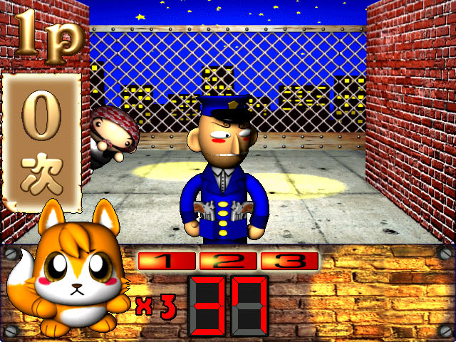玩家在此关,必须小心地操控左墙后的小偷们,并训练他们成功的运用易容术,躲避前方的警员,到达另一边,当然警察们也不是省油的灯阿~他们会突然地转过身来~袭击偷儿~可要注意那警察讲话的语气、音调、和速度喔,千万别被逮个正着,不然可是一阵的枪林弹雨~担保你一定皮开肉绽唷~~此外这边也有时间跟次数的限制,玩家必须在限制的时间内,成功的到达另一边X次~才算过关呢~(X会随难易度而有所改变),请小心~~