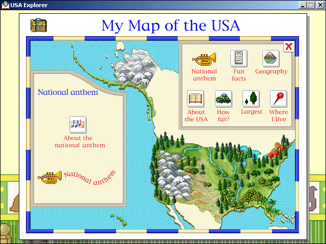 《美国探险家》USA Explorer 提供了神秘和娱乐性,同时还提供了深入的地理课程。当你试图邮递一个重要的秘密包裹时,你会从一个海岸到另一个海岸去追踪线索。在你的旅途中,你将了解到每个地区的历史、风俗和文化习俗。孩子们被要求送一个包裹给乔,一个正在 50 个州旅行的小家伙。通过阅读(或听)线索,孩子们要找到乔,并在此过程中参观几十个有趣的地点和地标。在某些地方,软件会提供历史事实。在另一些游戏中,游戏玩家可以得到当地地标或动物的贴纸。当玩家追踪到乔五次后,他们就成了美国官方探险家。