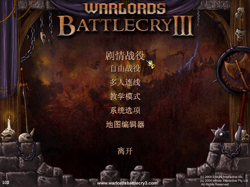 《战神》(Warlords)系列是游戏业界知名的回合制战略游戏之一,从 1989 年 SSG 首创第一集至 97 年第三集《英雄王朝》和《暗主降临》取得了巨大的成功。2001 年 SSG 推出的《呼啸战神》(Warlords - BattleCry)以整个战神系列为剧情背景,而在具体故事情节上保持独立,成为即时战略游戏的一个经典。当 Enlight 宣布 5 月在北美发售第三代《呼啸战神 3》(Warlords Battlecry 3)时,国内爱好战略策略游戏的广大玩家翘首以盼。而光谱早在 3 月就为玩家签下了《呼啸战神》的国内代理权,汉化工作完成后,正式命名游戏为《战神 - 狂神天威 3》