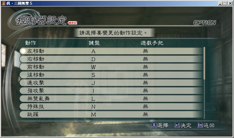 与前作不同的是,本作中人物的动作系统不再由 X 键和 Y 键的不同组合构成,取而代之的是一种被称为“连舞”的新动作系统。这种系统只需通过连续按 X 或 Y 键来使人物完成一整套完整的攻击动作,X 键为轻攻击,Y 键为重攻击。连舞系统分为四级。在发动连舞后击破一定数量的敌人后,人物的连舞槽便会升至下一级别,级别越高连舞的动作也就越连贯且动作越复杂。注意:要达到最高等级的连舞必须要保证人物成长至一定等级并积攒足够的技能(或者是在游戏中击破捡拾击破敌方军旗手掉下来的连珠来暂时达成这一点)。