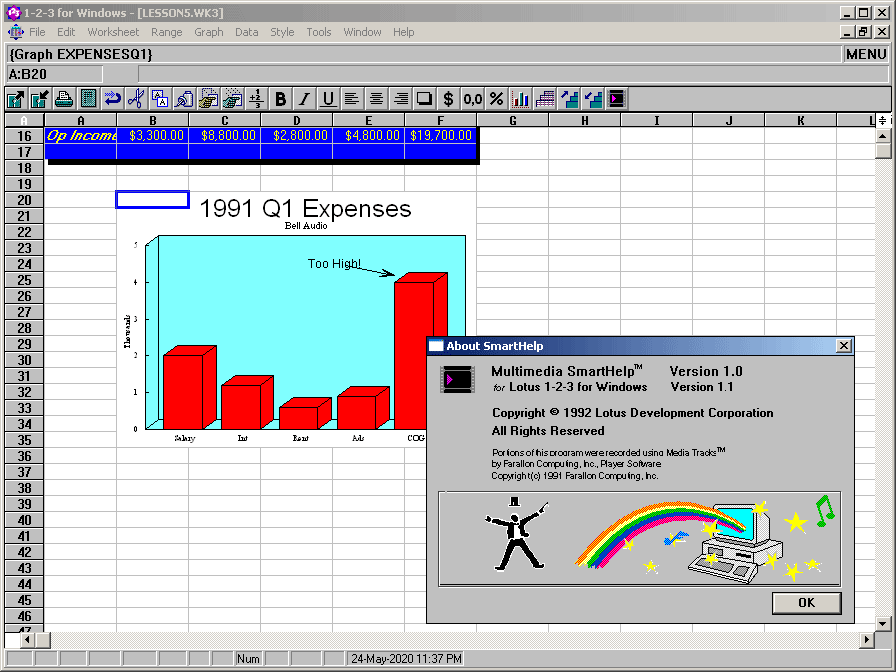 Lotus 1-2-3 是早期电子表格应用程序。它在 20 世纪 80 年代末变得非常流行,Lotus 很难将 1-2-3 适应 Windows 环境,并被 Microsoft Excel 超越并取代。Windows 版 Lotus 1-2-3 的功能与 DOS 版 1-2-3 Release 3 相当。它于 1992 年发布,是一个 16 位 Windows 3.0 应用程序,可在 XP 上安装。