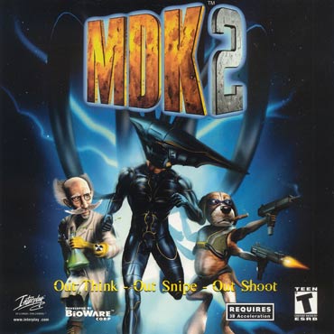 MDK2 是 Interplay 公司和 Bioware 公司 1999 年联合发行的一款 3D 射击游戏。游戏的画面比 MDK1 好,但场景多选择在了室内,而且场景也不如 MDK1 丰富了,但武器是全新的,而且不是像以前只控制 Kurt,而是控制三个角色:Kurt,Max,Dr.Hawkins。三个人各有不同的特点,但不可随意选角色。