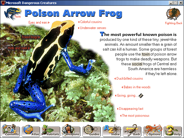 微软发行的一款介绍危险生物的多媒体光盘,大部分的内容是由自然和儿童电视节目主持人 Josh Whelan 编写。