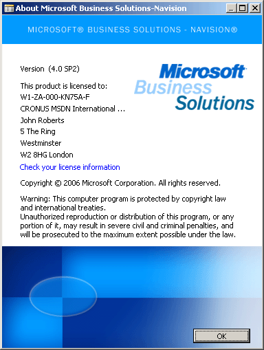 Licensed to | CRONUS MSDN International Ltd.(United Kingdom) |