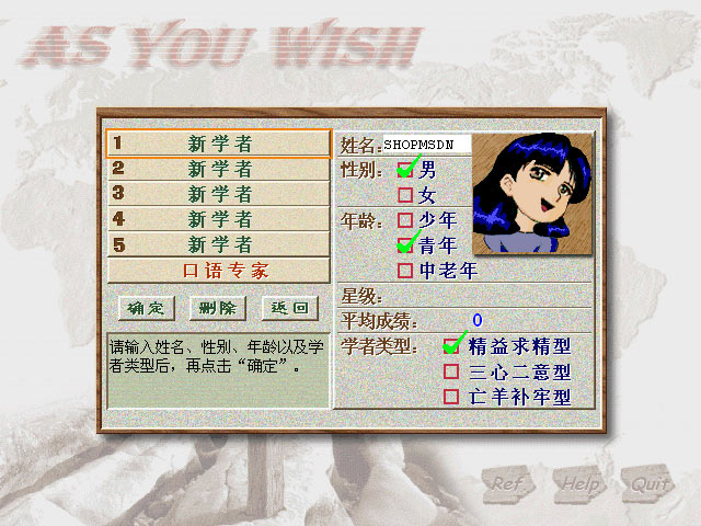 《随心所欲》为本系列英语教学软件的开篇巨作,旨在对有一定词汇量基础的英语学习者进行地道而全面的英语口语强化训练,通过听讲、跟读、练习、测试、浏览、欣赏等学习过程,辅以最新语音识别技术进行口语校正,最终实现在日常生活中的流利会话。