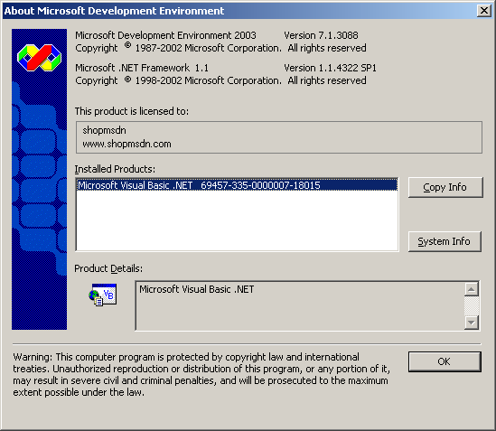 名称Microsoft Visual Basic .NET 2003 (标准版)