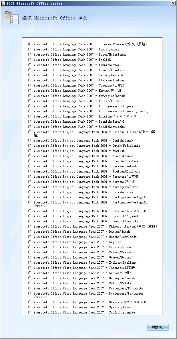 名称Office Multi-Language Pack 2007 多语言包 (DVD1)