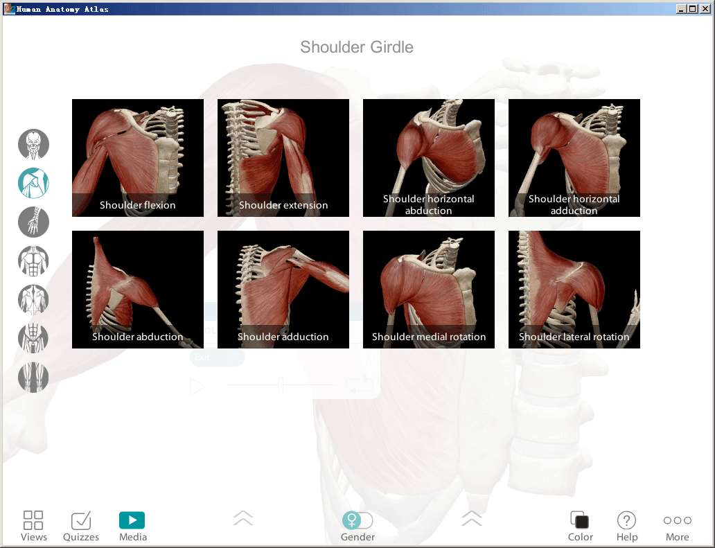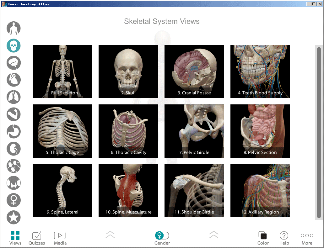 拥有如此多三维内容,绝无仅有的应用程序。包括男性和女性人体模型所有系统在内的 3,600 多个解剖结构: