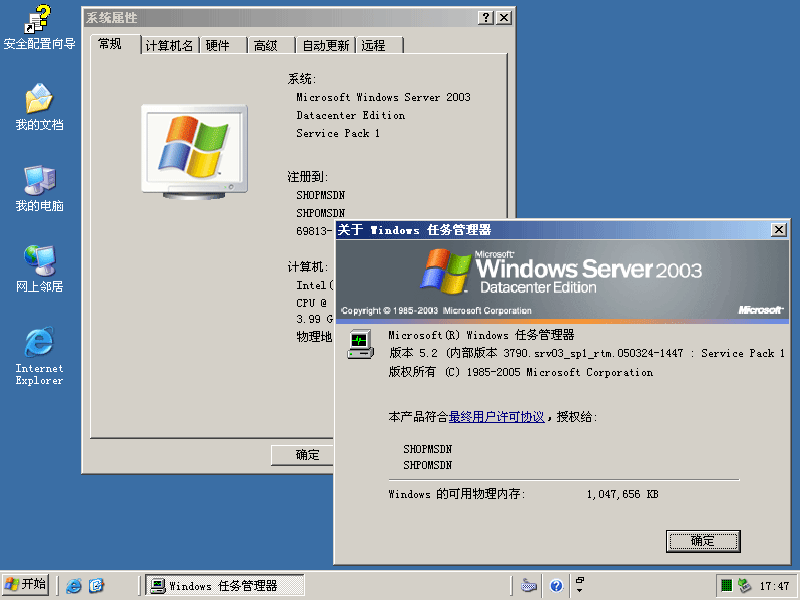 Windows Server 2003 Datacenter Edition 数据中心版 (with SP1)